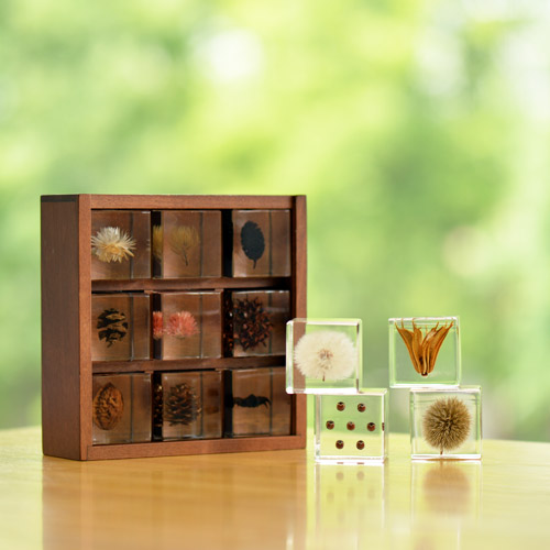4cm四方の透明なアクリルのキューブに閉じ込められ、